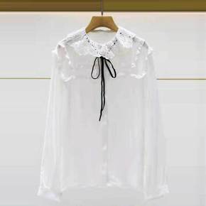 白色蕾丝打底衫设计感甜美娃娃领衬衫内搭超仙复古洋气...