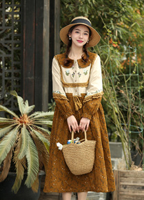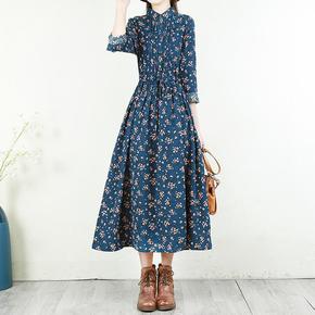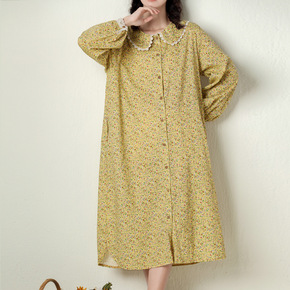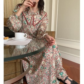 上身美掉了!巨显气质~复古大翻领娃娃领碎花长款连衣...