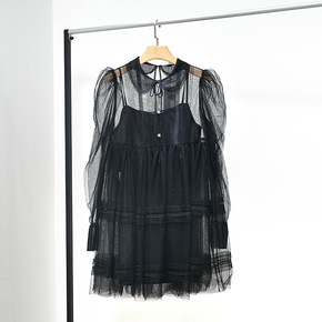 赫本风丝绒小黑裙2021早秋新款收腰显瘦中长款灯笼...