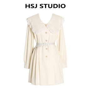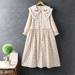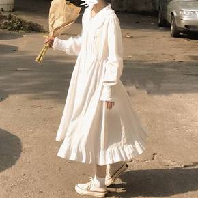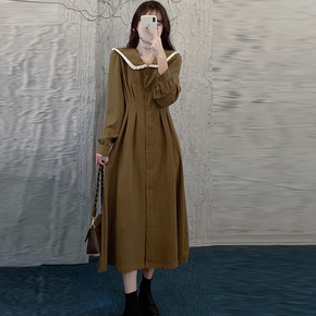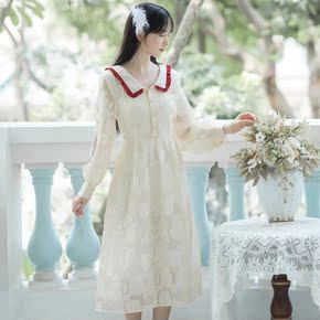 甜美新款日系娃娃领少女学生小个子学院风韩版中长款字...