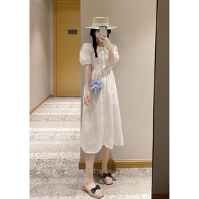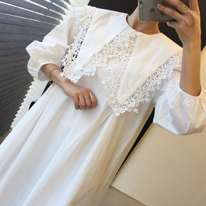 K小姐女装自制 清凉白色连衣裙娃娃领仙女裙单排扣棉...