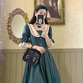 法式初恋甜美连衣裙小清新减龄娃娃领收腰修身温柔风茶...