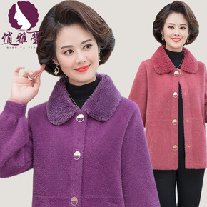 中老年女装2021秋装新款妈妈装仿水貂绒洋气时尚针...