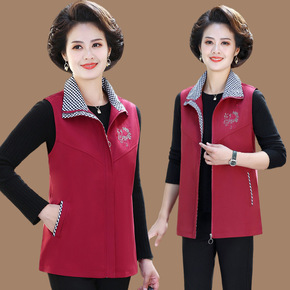中老年女装秋季卫衣加肥大码妈妈装春秋马甲奶奶马夹摇...
