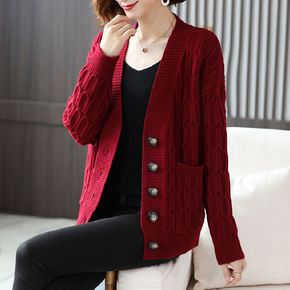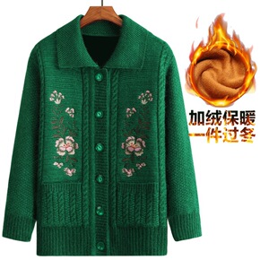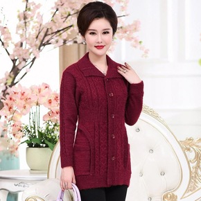 中老年女装妈妈装秋冬开衫外套针织衫大码妈妈装中长款...