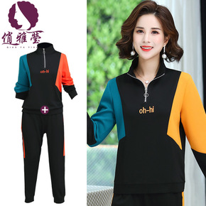 休闲运动套装女2021春秋新款时尚宽松中老年妈妈装...