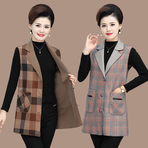 中年妈妈装秋冬羽绒棉马夹外套中长款大码中老年女装无...