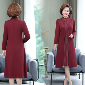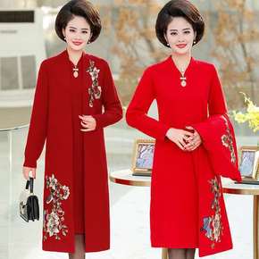 婚庆礼服妈妈秋冬装两件套高贵中长款毛衣裙气中年女装...