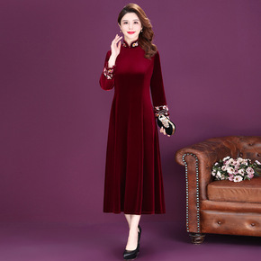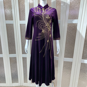 春秋妈妈金丝绒连衣裙高贵洋气喜婆婆结婚宴礼服高端厂...