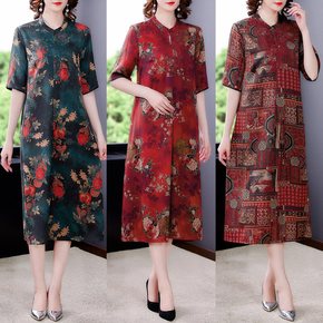 中老年妈妈2021夏季女装新款洋气质连衣裙子高贵喜...