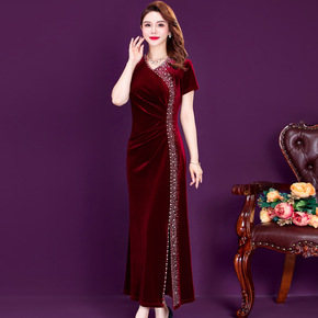 不加绒改良版连衣裙金丝绒高贵婚礼妈妈结婚礼服喜婆婆...