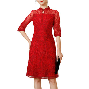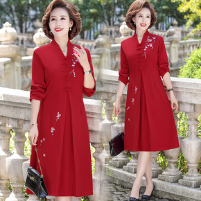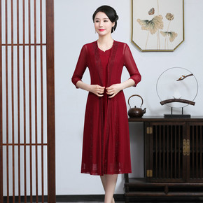 婚礼妈妈礼服高贵红色连衣裙新娘丈母娘洋气年轻结婚喜...