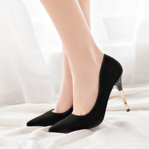 春秋季韩版超气质OL时尚单鞋浅口尖头高跟鞋细跟粉色...
