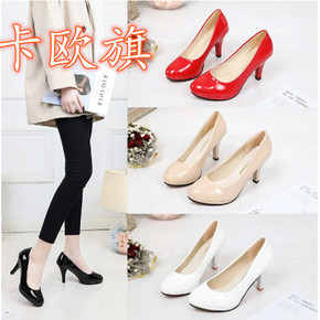 婚鞋女2015新款红色高跟鞋新娘鞋粗跟结婚鞋子红鞋...