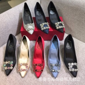 乐菲家!东莞鞋高版本!方扣粗跟单鞋水钻真丝高跟鞋婚...
