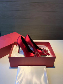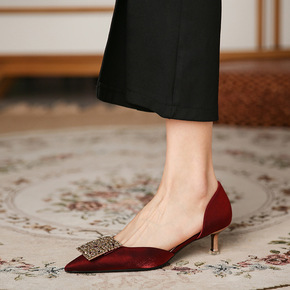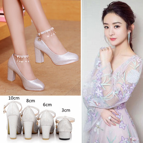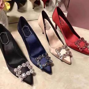 绸缎面rv女鞋林心如唐嫣同款新娘高跟鞋细跟婚纱中跟...