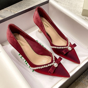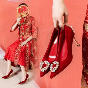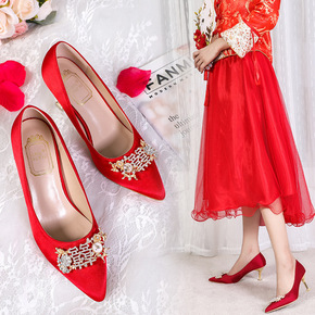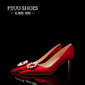 pjjuu婚宴鞋 中式婚鞋2021新款红秀禾高跟鞋...