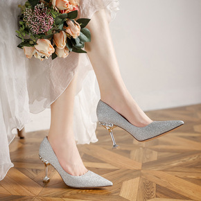 外贸大码水钻高跟鞋女 细跟尖头单鞋 婚鞋女 晚宴礼...