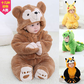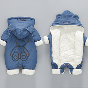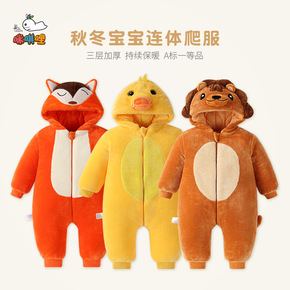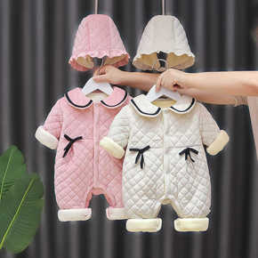 A婴儿衣服秋冬加厚夹棉爬服外出新生儿哈衣男女宝宝衣...