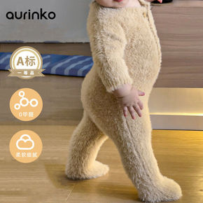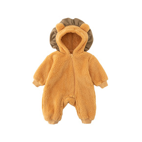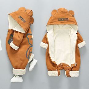 婴儿连体衣秋冬新生儿加厚小熊男女宝宝毛绒夹棉爬服保...