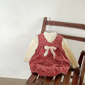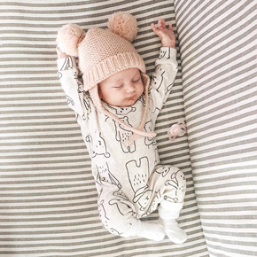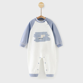 韩国ins风婴儿长袖连体衣秋装宝宝秋季外出哈衣满印...