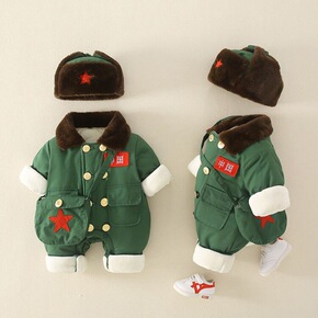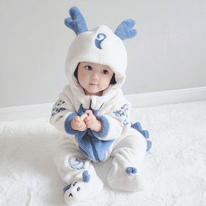 冬季婴儿套装宝宝连体衣秋冬男宝大衣防寒超厚外出婴幼...
