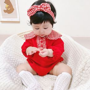 韩版婴儿秋冬连体衣女宝宝百天周岁外套加绒加厚保暖哈...