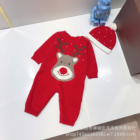 婴儿连体衣针织爬服2022秋冬新款宝宝可爱小熊外出...