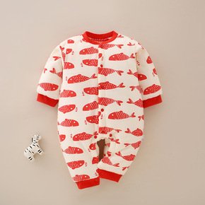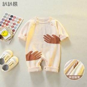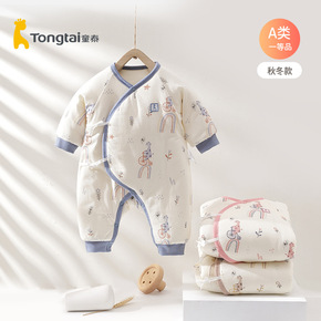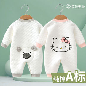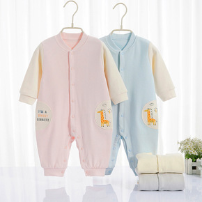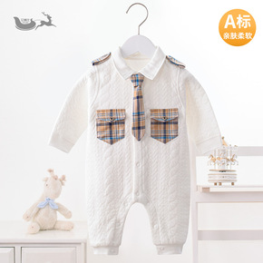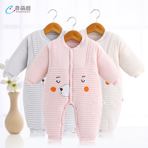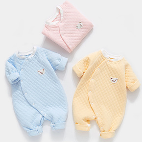婴儿衣服秋冬新生儿夹棉哈衣爬服外穿春装纯棉宝宝薄棉...