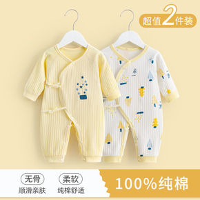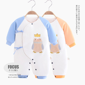 新生儿夹棉连体衣秋冬保暖偏襟蝴蝶衣婴儿无骨哈衣宝宝...