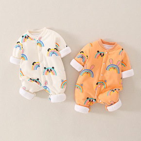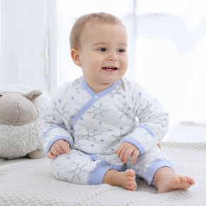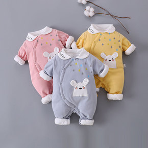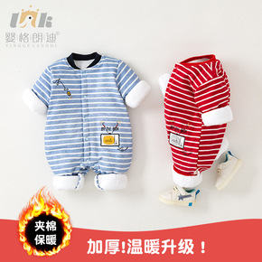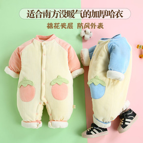 婴儿秋冬装连体衣保暖夹棉哈衣爬服宝宝加厚新生儿衣服...