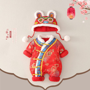 韩国婴儿冬装连体衣服加厚中国风唐装喜庆拜年服女宝宝...