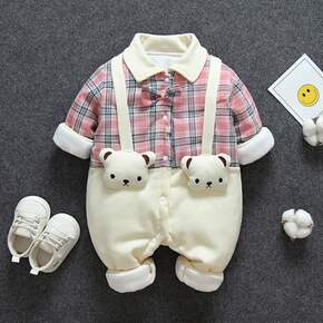 婴儿衣服秋冬夹棉加厚翻领假两件连体哈衣棉服男宝宝春...