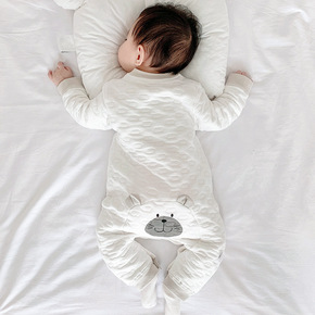 婴儿连体衣春季新生儿衣服春装保暖宝宝哈衣套装夹棉初...