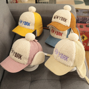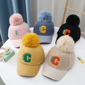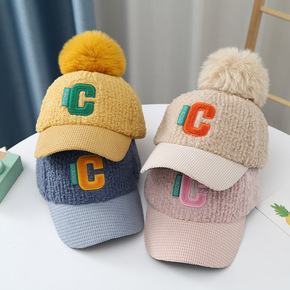 儿童毛球棒球帽冬季新款保暖鸭舌帽帽子男孩时尚百搭潮...