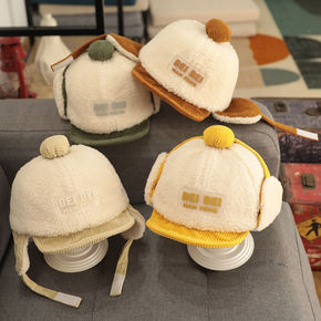 儿童帽子秋冬季棒球帽男童潮冬天保暖护耳鸭舌帽时尚女...