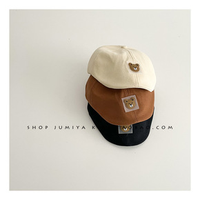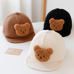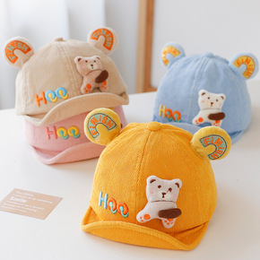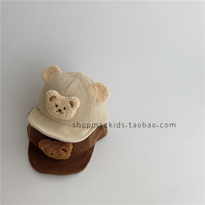宝宝鸭舌帽春秋短檐儿童鸭舌帽韩国复古灯芯绒可爱小熊...