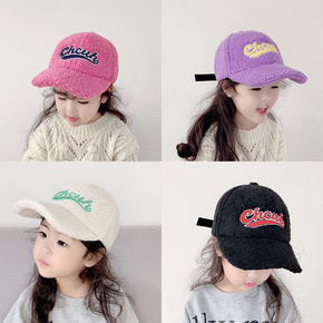 儿童保暖鸭舌帽秋冬男女童休闲毛绒帽子韩版羊羔毛百搭...