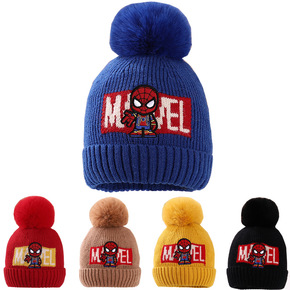 男童毛线帽欧美新款蜘蛛侠套头帽儿童保暖帽子户外针织...