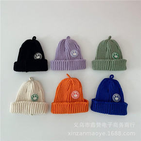 儿童帽子秋冬笑脸贴标毛线帽韩版潮男女童百搭可爱护耳...