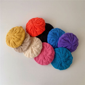 儿童画家帽秋冬复古韩范宝宝毛线帽春秋麻花针织糖果色...