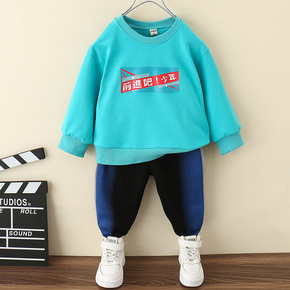 男童运动套装春秋新款儿童针织毛圈卫衣 运动裤 中大...