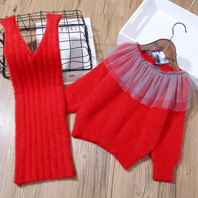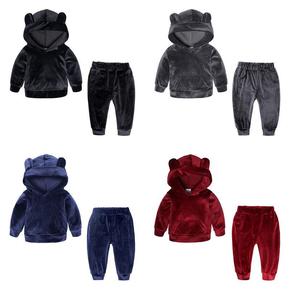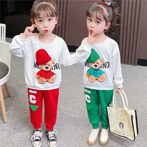 跨境卫衣INS秋装两件套潮款运动服女孩儿童金丝绒童...