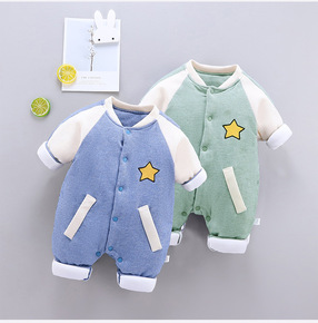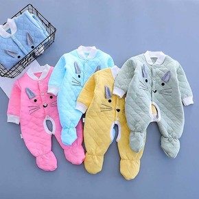 婴儿薄棉连体衣秋冬款宝宝夹棉冬装6个月新生儿外出衣...