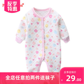 新生儿薄棉连体衣服加厚保暖女宝宝夹棉哈衣外出男婴儿...