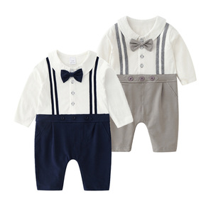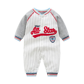 22婴儿秋装新款童装棒球服连体衣0-1岁男宝宝哈衣...