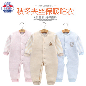 秋冬款圣凡欧宝宝保暖哈衣无骨立领束口婴儿薄棉连体6...