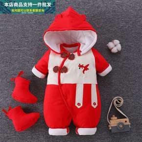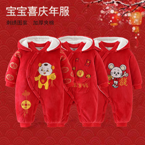 婴儿新年装红色过年衣服喜庆冬装宝宝满月百日洋气加厚...
