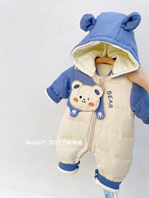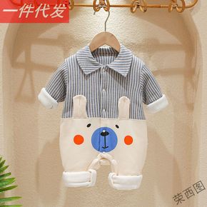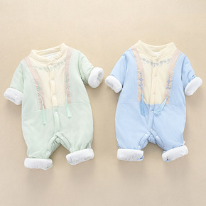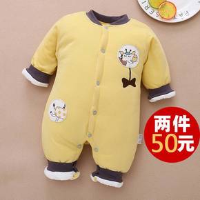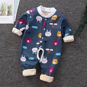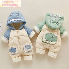 儿连体棉衣婴儿长袖连体衣冬款儿爬服装加绒婴儿衣服男...