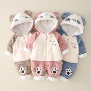 跨境跨境婴儿连体衣冬加厚外出夹棉保暖外套初生男女宝...